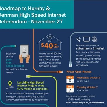 The Provincial Government announces a $5.64 million grant toward providing "last mile" internet infrastructure to the Hornby & Denman Internet project.